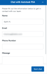 Ingrese la información requerida y haga clic en Comenzar chat.