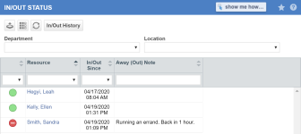 El Panel de estado Presente/Ausente le muestra el estado actual presente/ausente de su personal y brinda un historial completo de presencia/ausencia para cada recurso.