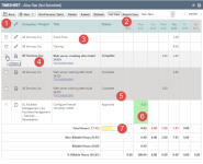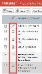 | 4 | Las filas de resumen aparecen en gris claro. Si existen múltiples entradas de tiempo para una tarea o ticket, usted verá un elemento de línea de resumen para la entrada con un fondo gris y texto en negrita. Para ver todas las entradas de tiempo asociadas, haga clic en el símbolo más en la columna izquierda. Haga clic en el símbolo menos para contraer las entradas. |