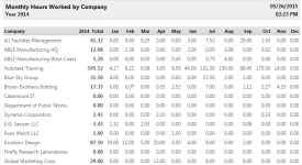Horas facturadas para la organización seleccionada, por recurso y mes, con los totales del año hasta la fecha. |