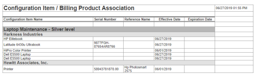 Los dispositivos con una asociación de productos de facturación basada en reglas, agrupados por producto de facturación y, a continuación, por organización. Incluye la fecha de entrada en vigencia y la fecha de expiración de la asociación. |