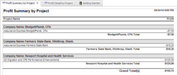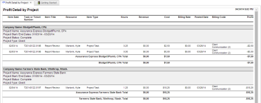 Muestra los detalles financieros del proyecto. Vea los desgloses y totales de gastos, ingresos, ganancias e ingresos proyectados. Además, el reporte también muestra todas las tareas junto con el estado de la tarea, las horas estimadas, las horas trabajadas, las horas y la cantidad contabilizadas y el costo. |