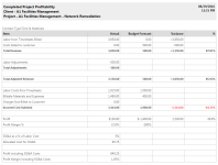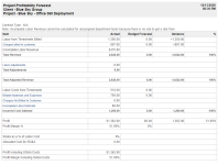 Una comparación de ingresos y costos pronosticados y reales de proyectos, incluyendo varianza por importe y porcentaje. |