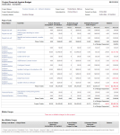 Detalles financieros del proyecto pendiente. Vea los desgloses y totales para los gastos, ingresos, ganancias e ingresos proyectados. Además, el reporte también muestra todas las tareas junto con el estado de las tareas, horas estimadas, horas trabajadas, horas e importe contabilizados y costo. Note que para aparecer en este reporte, los hitos de contratos de precio fijo tienen que estar asociados con una tarea o fase de proyecto. Consulte Agregar o editar un hito. |