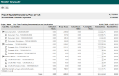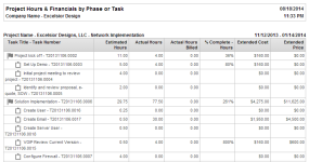 Diseñado para socios que usan una gestión presupuestaria por fases, este reporte resume los estimados de fases por función en términos de las tarifas, los estimados y las horas reales usados en cada fase. Cuando se aplica el tiempo a las tareas en una fase, las horas reales se actualizan en relación a la función. |