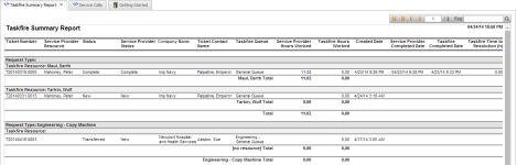 | Descripción | Este reporte brinda información sobre tickets de Taskfire, incluyendo el tiempo de resolución para el cliente de Taskfire. La información está agrupada por tipo de solicitud y recurso de Taskfire. |