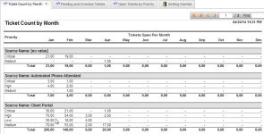 | Descripción | Este resumen ofrece un recuento de tickets por mes durante un año. Los tickets son filtrados por origen y se detallan por prioridad. |