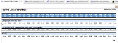 | Descripción | Este reporte ofrece un recuentos de tickets creados por hora en el día. El reporte está agrupado por organización. |