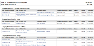 | Descripción | Este reporte está agrupado por cliente y muestra el vínculo del número del ticket, el título del ticket, el recurso asignado, el estado, la prioridad, la fecha de vencimiento y la fecha de última actividad. |