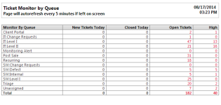 | Descripción | Diversas métricas de tickets, ordenadas por cola. Este reporte le ayuda a comprender cómo las colas lidian con el volumen de tickets. |
