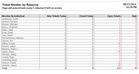 | Descripción | Diversas métricas de tickets, ordenadas por recurso. Este reporte le ayuda a comprender cómo los recursos manejan el volumen de tickets. |