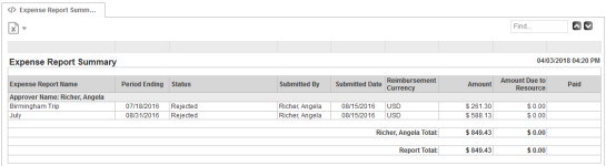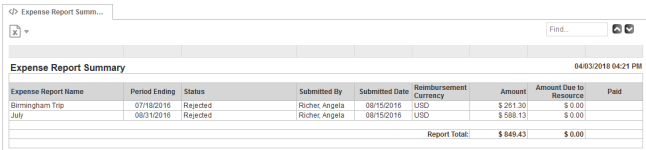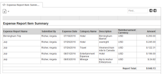 | Descripción | Una lista de elementos de reportes de gastos según los criterios seleccionados. |