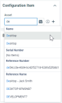 - Para los elementos de configuración, se buscan los campos nombre, número de serie, número de referencia y nombre de referencia.