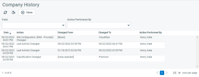 IMPORTANTE Las páginas de historial de entidades informan de los cambios realizados en los campos de una entidad. No informan de la configuración de los valores iniciales de esos campos cuando se crea la entidad por primera vez.