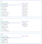 Si conoce los nombres de los individuos, puede utilizar la característica de escritura anticipada. Autotask buscará el nombre de pila, el apellido y las iniciales para encontrar una coincidencia de la cadena que ingrese.