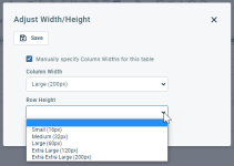 | Ajustar ancho/alto | Esta opción le permite seleccionar entre varios anchos de columna y alturas de fila preestablecidos. |