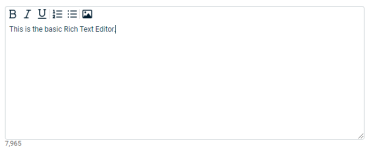 La versión básica del editor de texto enriquecido está disponible para los siguientes campos: