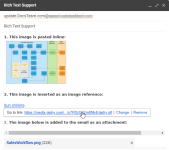 El procesamiento de correo electrónico entrante permite texto enriquecido e imágenes.