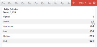 Acerca de los widgets de tablas de gráficos de pestañas enteras