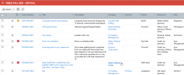 Muchos clientes de Autotask utilizan widgets de cuadrícula y widgets de gráfico del tipo Tabla esencialmente como búsquedas guardadas. Como suelen contener una larga lista de elementos, tiene la opción de crearlos como widgets de pestaña completa que ocupan todo el espacio disponible en la pestaña. No tendrá que explorar ni desplazarse para ver hasta 100 elementos.