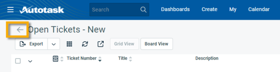 Un widget de tipo Grid es un widget en forma de tabla Autotask. Puede encontrar tablas a tamaño completo en muchas páginas de Autotask. Estas tienen varias columnas e incluyen características que le permiten gestionar tanto la lista como los elementos en la lista. Consulte Gestionar elementos desde el widget taladro en rejillas, más arriba.