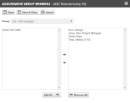 Se abre la página Agregar/Quitar miembros de grupo. Todos los contactos de la organización actual aparecen a la izquierda.