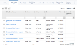 La pestaña Pedidos de venta aparece en las pestañas de accesorios de la página Organización. En esta pestaña, puede ver y gestionar los pedidos de ventas existentes para la organización. Para abrir la página, use la(s) ruta(s) de acceso en la sección Seguridad y navegación más arriba.