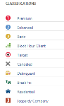 Las clasificaciones están asociadas a iconos que proporcionan identificadores visuales utilizados para categorizar y buscar organizaciones. Aparecen con el nombre de la organización en todo Autotask. Consulte Íconos de identificadores.