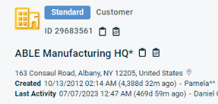 Última actividadÚltima actividad es un campo compuesto que muestra la fecha y la hora de la última actividad, cuánto tiempo hace de esa fecha/hora (basándose en la hora en que abrió la página), así como el usuario asociado a la actividad. Se actualiza cuando ocurren ciertas acciones en la entidad principal o en entidades asociadas. Para una descripción general de las acciones que actualizan la fecha de la Última actividad en diversas entidades, consulte La página Organización. |