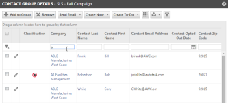 La cuadrícula que muestra los miembros del grupo de contactos tiene características avanzadas que le permiten controlar tanto las columnas como las filas que aparecen, y como estas son agrupadas y filtradas.