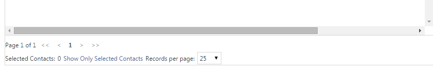 Las herramientas de navegación para moverse a través de la lista, junto con la información adicional sobre el número de elementos en la lista, aparecen debajo de la cuadrícula. Usted puede ver cuántos registros hay en la lista actual, cuántas páginas de registros hay y cuántos elementos están seleccionados de entre todas las páginas.
