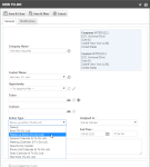 | Tipo de acción* | Seleccione el tipo de acción que mejor describe la actividad desde la lista de tipos de acción. Los tipos de acción determinan dónde se mostrará la tarea pendiente en Autotask PSA. Para más información sobre tipos de acción, consulte Acerca de tareas pendientes y notas de CRM. |