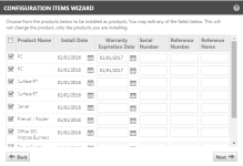 El asistente de dispositivos toma un artículo ya identificado por Autotask (como artículo de presupuesto o cargo) y lo asocia permanentemente al cliente. El asistente le permite tomar la información genérica del producto y le deja agregar información de garantía, los números de serie, etc. para identificar el elemento de configuración específico. Cuando hay un problema con el dispositivo, se puede hacer referencia a él directamente en el ticket.