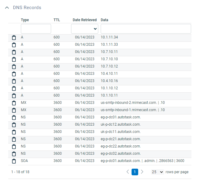 El tipo de registro DNS. Autotask recuperará los siguientes tipos de registros DNS: