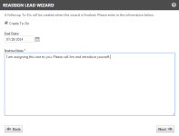 - Para crear una tarea pendiente para el recurso recientemente asignado, complete el campo Instrucciones y edite la fecha de vencimiento, si lo desea. Haga clic en Siguiente.