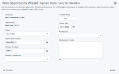 Usted puede ver el motivo de obtención de una oportunidad en el panel Oportunidad, a menos que esté oculto por la categoría asignada a la oportunidad. También puede añadir la columna Win Reason a la tabla de búsqueda de oportunidades.