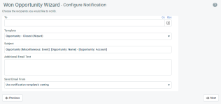 En esta página, usted elige los destinatarios a los que desea notificar que se ha cerrado la oportunidad. Para una descripción de los campos de notificaciones, consulte Panel de notificaciones.