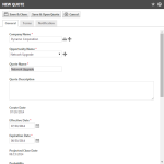 Si es una nueva cotización, usted puede usar una plantilla de formulario de cotización para rellenar rápidamente campos clave. Como opción, seleccione una propuesta de proyecto o añada una nueva.