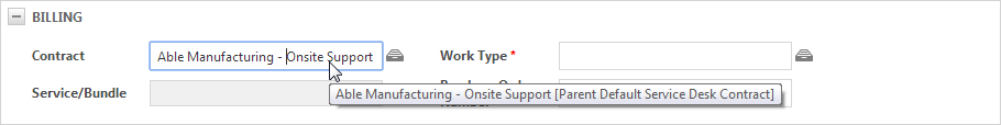 NOTA Los usuarios con permisos de entrada de tiempo para modificar contratos en entradas de tiempo de tareas y tickets pueden sobrescribir cualquier selección selección automática de contratos.
