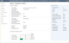 | Opciones | Vínculos a diversas características de gestión de contratos. Consulte: Crear un contrato Renovar un contrato de servicio recurrente Notas de contrato Buscar y gestionar contratos |