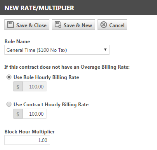 Para configurar una tarifa distinta para el contrato, haga clic en el botón de radio Usar tarifa de facturación por hora de contrato e ingrese una tarifa por hora. |