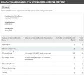 - En la parte inferior, los Dispositivos que no están bajo este contrato pueden asociarse al contrato haciendo clic con el botón derecho y seleccionando Asociar a este contrato. Si se trata de un contrato de servicio recurrente, se abre un selector de Servicios y Paquetes de Servicios para que puedas seleccionar el servicio o paquete que cubrirá este dispositivo. Seleccione un servicio o paquete de servicios.