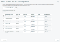 En esta página, se agregan servicios y paquetes de servicios a contratos de servicio recurrente. Si renueva o copia el contrato, usted también podrá quitar servicios y paquetes.![]()