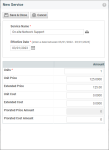 - Para abrir la página, use la(s) ruta(s) de acceso en la sección Seguridad y navegación más arriba. Haga clic en Nuevo paquete de servicios o Nuevo servicio al principio de la lista de Paquetes de servicio o servicios.