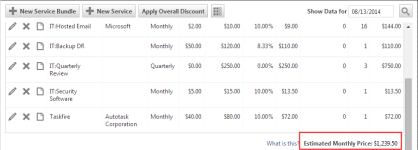 Dado que el precio final que aparece en la tabla se basa en el tipo de período del servicio, puede resultar difícil calibrar los ingresos mensuales estimados del contrato.