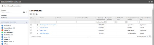 - Ver todos los dispositivos que tienen una fecha de caducidad de garantía, válido hasta la fecha (certificados SSL), o caducidad (dominios). Consulte Gestionar fechas de expiración.