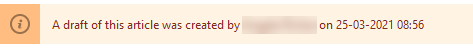 - Los borradores se comparten entre los usuarios. Si el primer usuario guarda un borrador para un artículo, y el segundo usuario edita ese artículo, el segundo usuario verá el borrador creado por el primer usuario. Aparecerá una barra de mensajes: