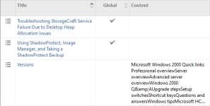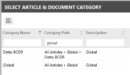 Para mantener los artículos globales en un mismo grupo, hemos creado una categoría de artículo Global dentro de la categoría Todos los artículos, y una sub-categoría Datto BCDR bajo ella. Usted puede fácilmente aplicar el filtro correcto en la pestaña Búsqueda avanzada.![]()