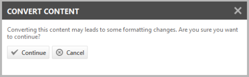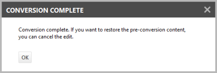 - Haga clic en Continuar. Un mensaje le hará saber que puede restaurar el contenido pre-conversión al cancelar la edición.