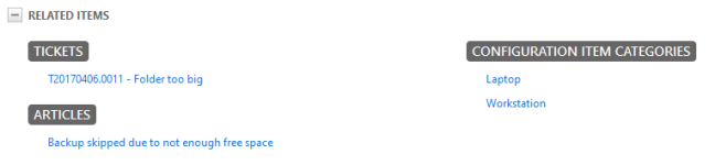 El ticket ya no aparece en la lista de tickets relacionados. La sección Base de conocimientos de la página de detalles del ticket eliminado ya no muestra un enlace al contenido.